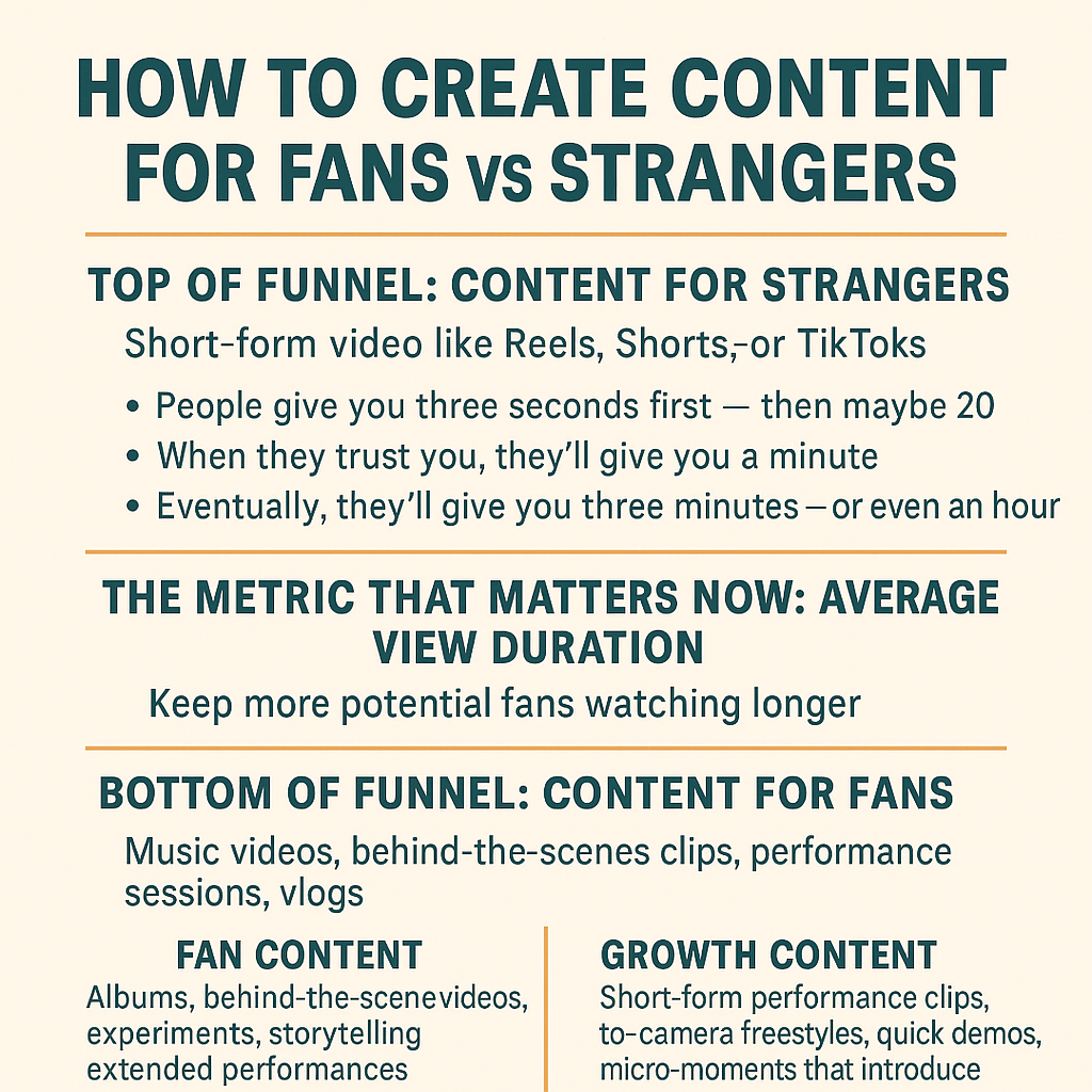 Most artists mix up fan content and growth content. Here’s how to separate them and build a real music marketing funnel.